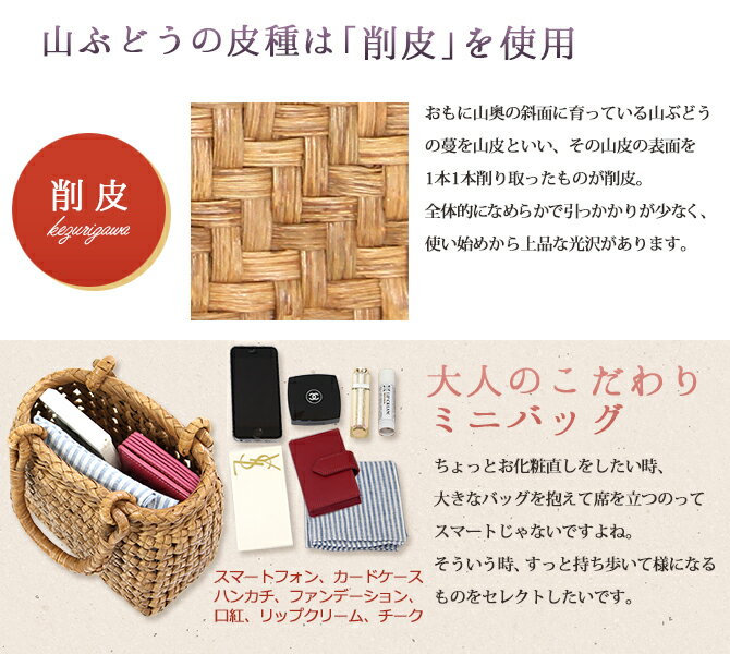 7日間返品OK! 山葡萄 ミニかごバッグ 石畳編み ポーチ ミニバッグ かごバッグ やまぶどう かごバッグ 山ぶどう バック カゴバッグ かごバック カゴ 籠バック 着物 大人 レディース 小さめ 小さめ 中 国産 ギフト メルカドバッグ おしゃれ 浴衣 送料無料 上品 和