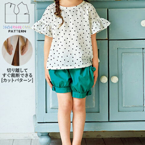 【型紙】 (カット済 パターン)BT095 フリル袖のプルオーバー (90 100 110 120) / 縫い代付き・実物大・ピリピリ離してすぐ裁断! ( 型紙 パターン ハンドメイドカンパニー )