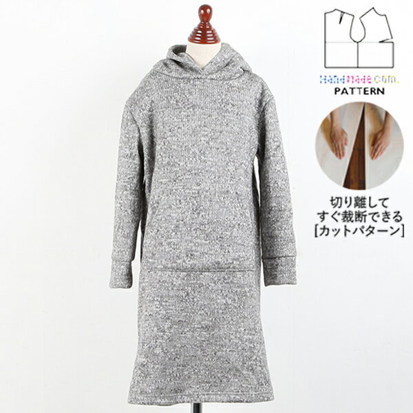 【型紙】 (カット済 パターン)CP0026 パーカーワンピース キッズ (90 100 110 120 130) / 縫い代付き・実物大・ピリピリ離してすぐ裁断! ( 型紙 パターン ハンドメイドカンパニー )