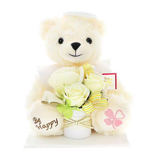 白寿 99歳 長寿祝い ソープフラワー ベア 女性 男性 白色 祖母 祖父 おばあちゃん おじいちゃん 誕生日プレゼント 孫 親 お花ソムリエ フラワー ギフト 敬老の日