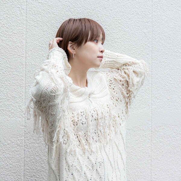 アラン模様とフリンジを組み合わせており、複雑なデザインですが可愛くご着用頂けます。